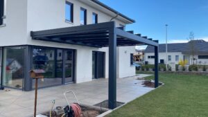 Manchmal braucht es nicht viel, um ein Zuhause spürbar besser zu machen. Was aber immer hilft sind gute Ideen, die richtigen Materialien und ein Partner, der beides zusammenbringt. Unser Kunde hier kam zu uns mit einem klar formuierten Wunsch. Deren Terrasse sollte mehr sein als ein Platz zum Sitzen. Modern, geschützt, offen. Gemeinsam geplant wurde eine Überdachung aus Aluminium mit Glaseindeckung. Flaches Dach, klare Linie, viel Himmel. Kein Kompromiss zwischen Design und Funktion – lieber beides in einem.